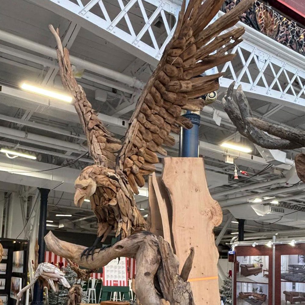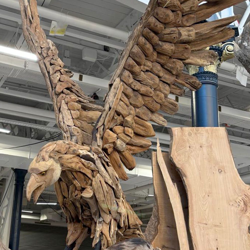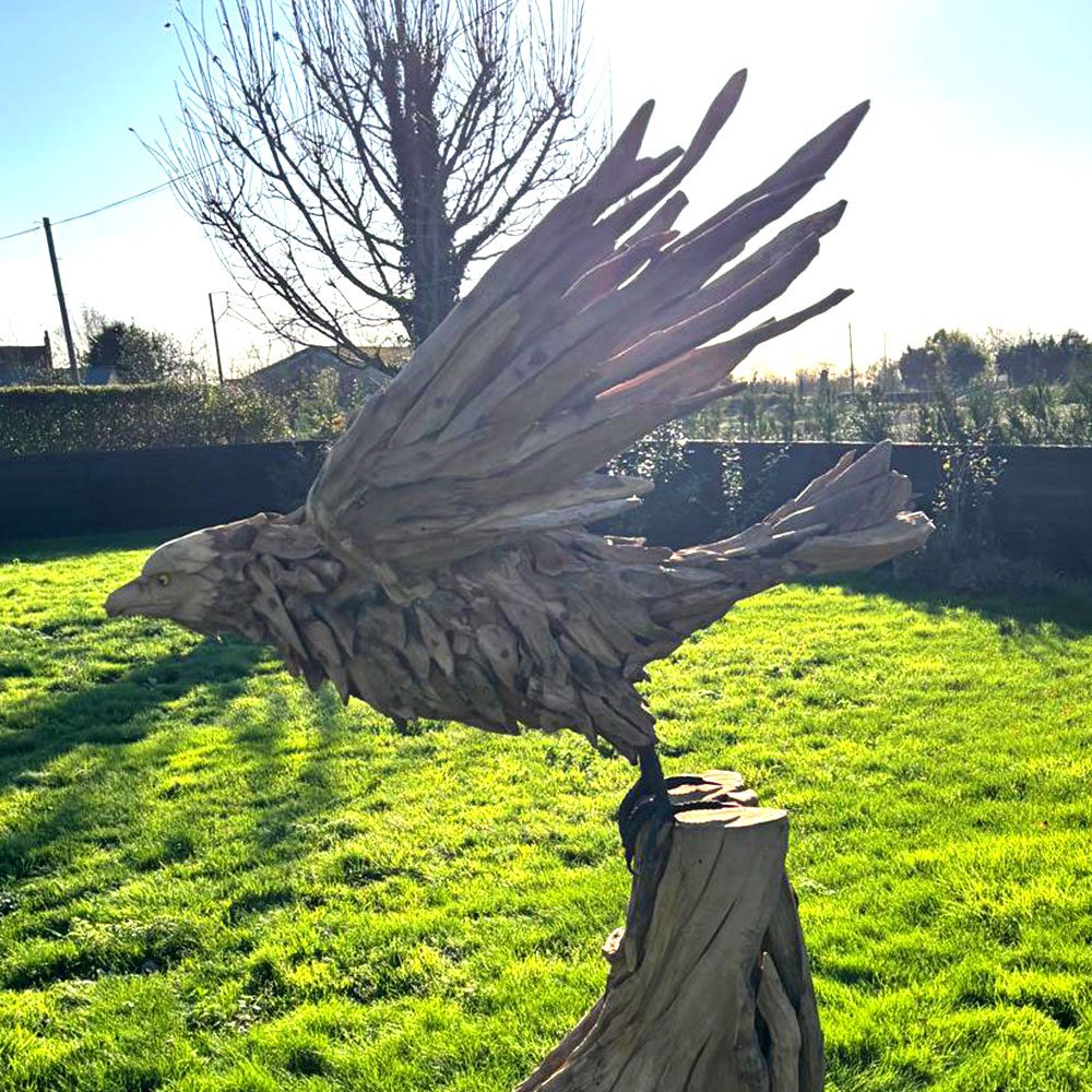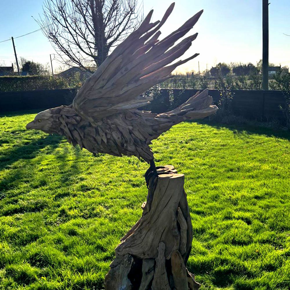 Bold and full of spirit, the Eagle Sculpture from Art by Nature captures the fearless beauty of this iconic bird. Handcrafted from the root systems of long-felled trees, each piece transforms reclaimed timber into a striking, one-of-a-kind woodland sculpture. With its powerful stance and uplifting presence, this eagle brings strength, movement, and the essence of “where eagles dare” into any home or garden. Suitable for indoor or outdoor display, it celebrates the raw character of natural wood while adding drama, freedom, and wild energy to your space.
