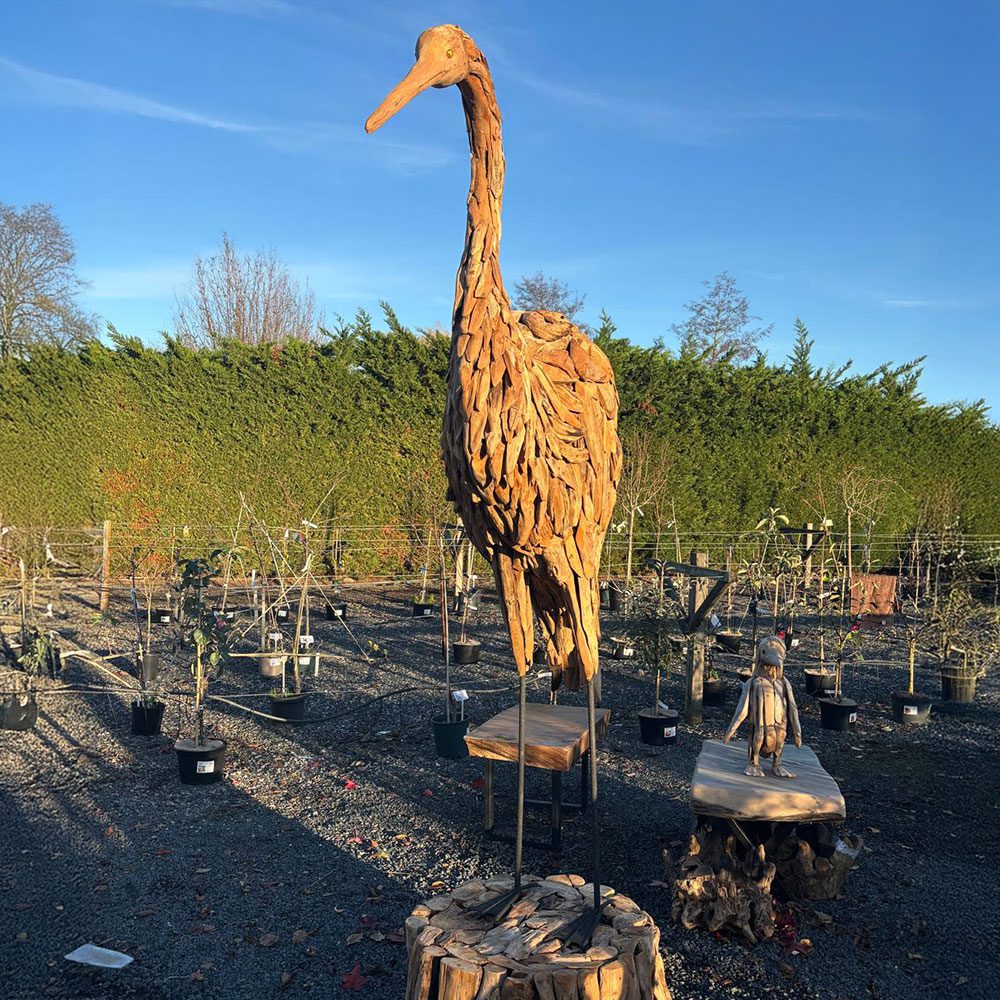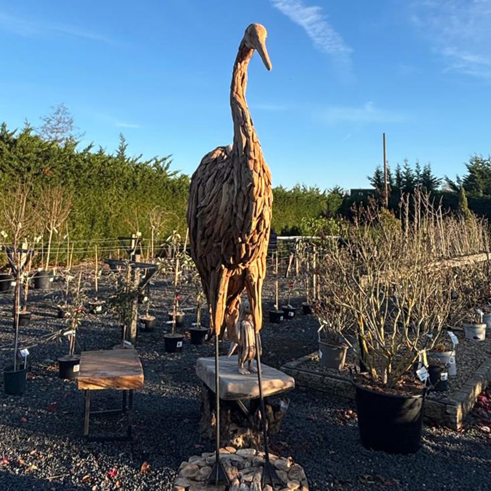 Magnificent and quietly poised, the Giant Heron Sculpture from Art by Nature captures the graceful stillness of this iconic bird. Hand-carved from the roots of long-felled trees, each sculpture transforms reclaimed timber into a tall, elegant figure with striking natural grain. Its serene stance brings balance, calm, and gentle movement to any garden or home. Suitable for indoor or outdoor display, this magnificent piece celebrates the beauty of nature and the timeless craftsmanship of handcrafted wood.