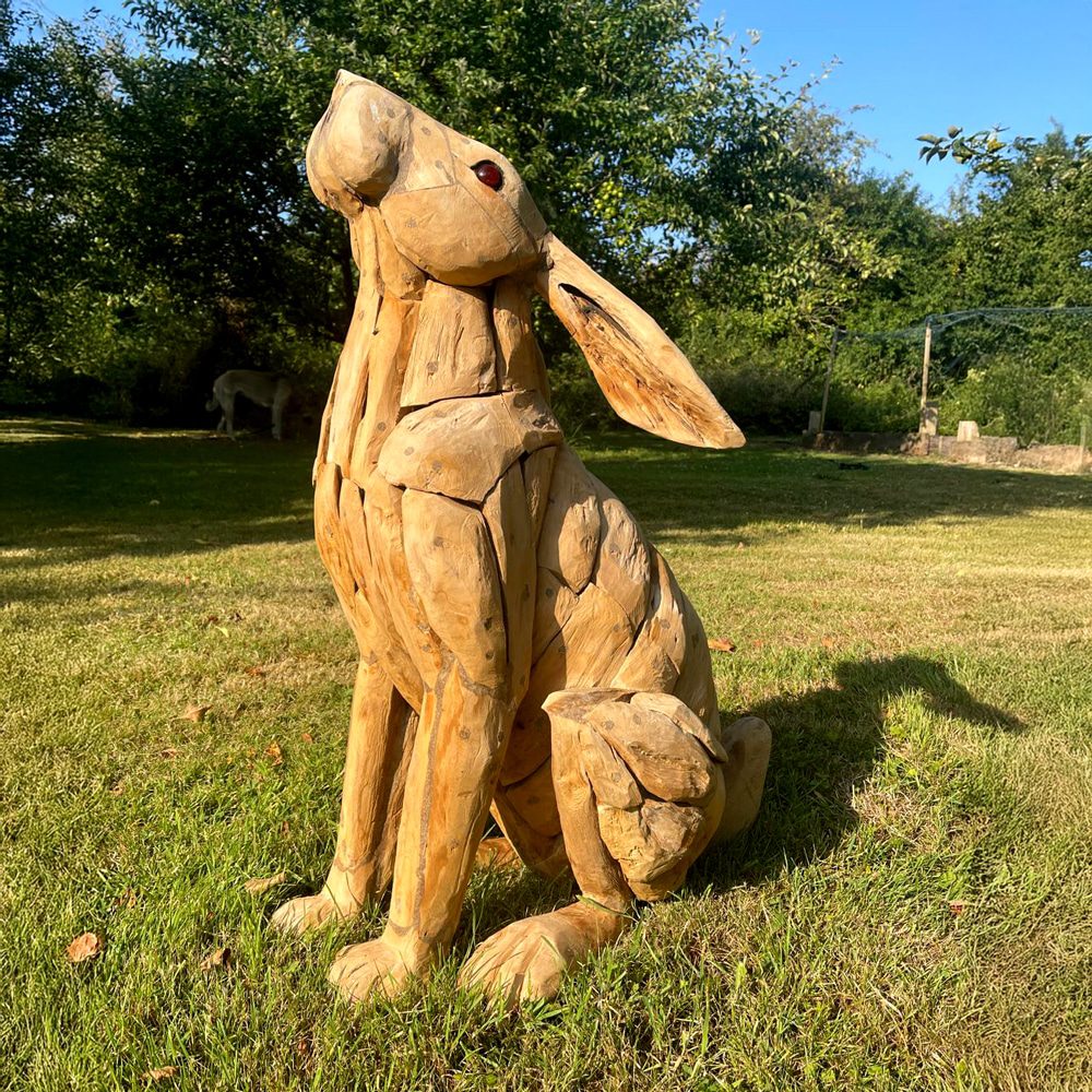 Gentle and contemplative, the Moon Gazing Hare Sculpture from Art by Nature captures a quiet moment of curiosity and wonder. Handcrafted from the root systems of long-felled trees, each piece transforms reclaimed timber into a lively, one-of-a-kind animal sculpture. With its poised stance and thoughtful expression, this hare adds charm and serenity to any garden or home. Suitable for indoor or outdoor display, it celebrates the natural beauty of wood while bringing personality, grace, and a sense of peaceful presence to any setting.